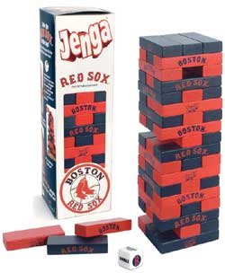 Introducing a new twist on the famous edge-of-your-seat party game Jenga boston red sox Build your tower with red sox red and blue blocks Game comes complete with 54 red sox hard wood jenga blocks 1 custom die custom red sox baseball rules and a loading tray for assembly recommended Age Range 6 Read More..