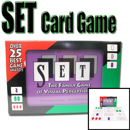 This award winning card game is for one or more players It is recommended for ages six and above The object of the game is to identify sets of three cards Each card is unique in its four features color - red green or purple symbol - diamond squiggle or oval shading - solid striped or open Read More..