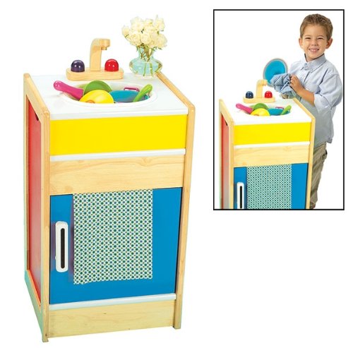This Childrens Toy Sink allows the child to lose themselves in their imagination cooking and cleaning in their small sized kitchen The wooden sink can be used with the stove and refrigerator to create an authentic kitchen This wonderful wooden sink h Sturdy brightly colored play sink Faucet sw Read More..