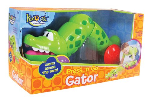 G02385 Features -Kidoozie Press n Go Gator-Press down on the gators back to see him zoom across the room-Rubberized wheels allow for long distance travel-Great for crawlers or beginning walkers-Recommended for ages 12 months and up Press down on the Gators back to see him zoom across the ro Read More..